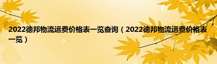 本文,2022德邦物流运费价格表一览查询,2022德邦物流运费价格表一览到此就分享完毕,希望对大家有所帮助。
