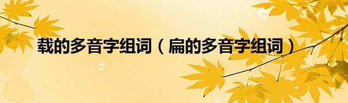 大家好,载的多音字组词,扁的多音字组词很多人还不知道,现在让我们一起来看看吧!