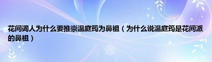 本文,花间词人为什么要推崇温庭筠为鼻祖,为什么说温庭筠是花间派的鼻祖到此就分享完毕,希望对大家有所帮助。