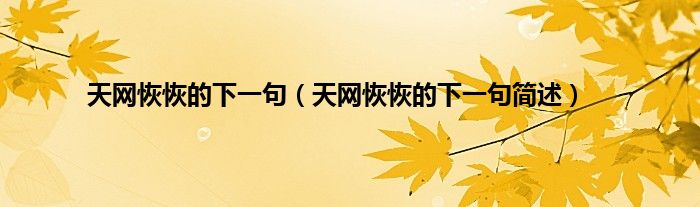 大家好,天网恢恢的下一句,天网恢恢的下一句简述很多人还不知道,现在让我们一起来看看吧!