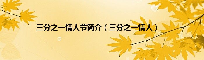 大家好,小问来为大家解答以上问题。三分之一情人节简介,三分之一情人这个很多人还不知道,现在让我们一起来看看吧!