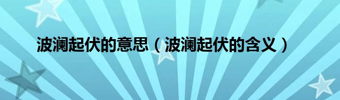 大家好,波澜起伏的意思,波澜起伏的含义很多人还不知道,现在让我们一起来看看吧!