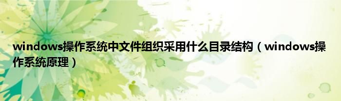 大家好,小问来为大家解答以上问题。windows操作系统中文件组织采用什么目录结构,windows操作系统原理这个很多人还不知道,现在让我们一起来看看吧!
