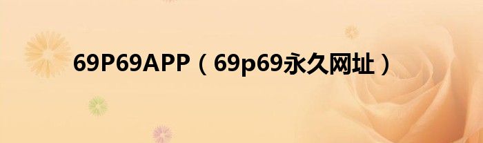 大家好,小问来为大家解答以上问题。69P69APP,69p69永久网址这个很多人还不知道,现在让我们一起来看看吧!