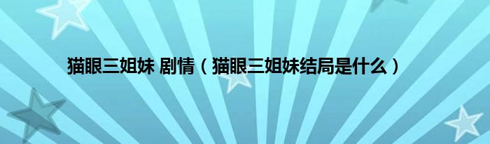 本文,猫眼三姐妹 剧情,猫眼三姐妹结局是什么到此就分享完毕,希望对大家有所帮助。