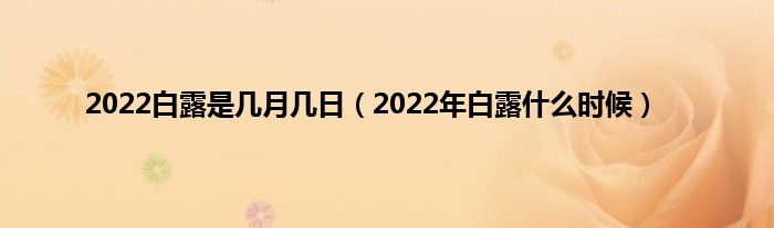本文,2022白露是几月几日,2022年白露什么时候到此就分享完毕,希望对大家有所帮助。