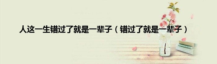 以上就是【人这一生错过了就是一辈子,错过了就是一辈子】相关内容。