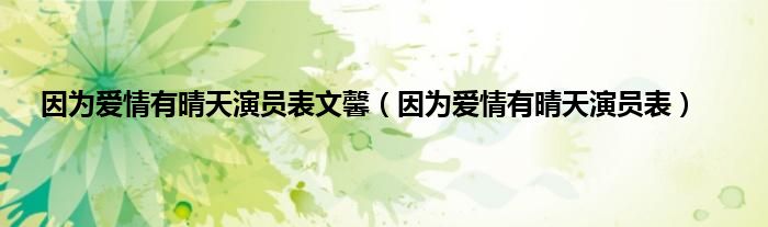 大家好,因为爱情有晴天演员表文馨,因为爱情有晴天演员表很多人还不知道,现在让我们一起来看看吧!
