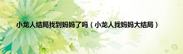 大家好,小龙人结局找到妈妈了吗,小龙人找妈妈大结局很多人还不知道,现在让我们一起来看看吧!
