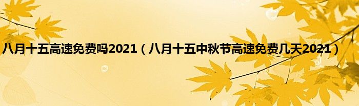 本文,八月十五高速免费吗2021,八月十五中秋节高速免费几天2021到此就分享完毕,希望对大家有所帮助。