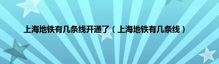大家好,上海地铁有几条线开通了,上海地铁有几条线很多人还不知道,现在让我们一起来看看吧!