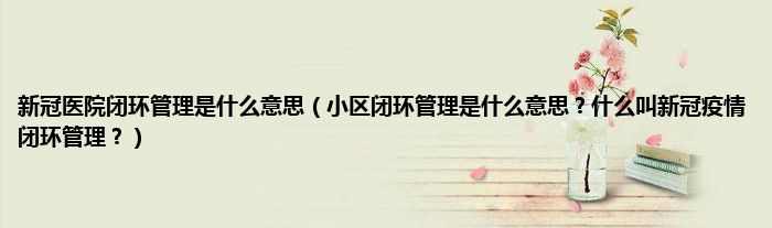 新冠医院闭环管理是什么意思(小区闭环管理是什么意思?什么叫新冠疫情闭环管理?)