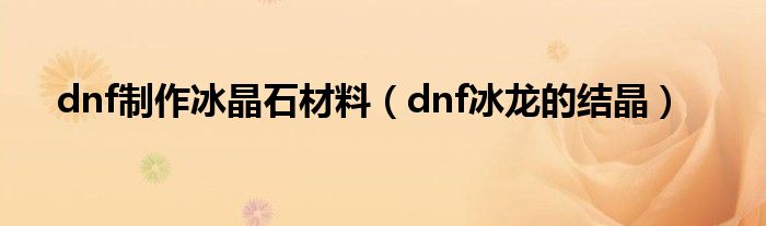 大家好,小问来为大家解答以上问题。dnf制作冰晶石材料,dnf冰龙的结晶这个很多人还不知道,现在让我们一起来看看吧!