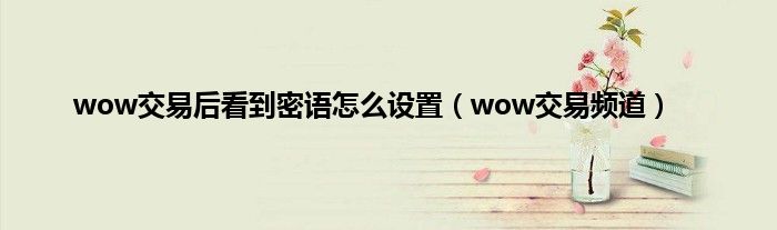 以上就是【wow交易后看到密语怎么设置,wow交易频道】相关内容。