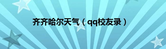 大家好,小问来为大家解答以上问题。齐齐哈尔天气,qq校友录这个很多人还不知道,现在让我们一起来看看吧!