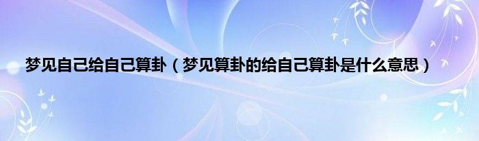 本文梦见自己给自己算卦,梦见算卦的给自己算卦是什么意思到此分享完毕,希望对大家有所帮助。