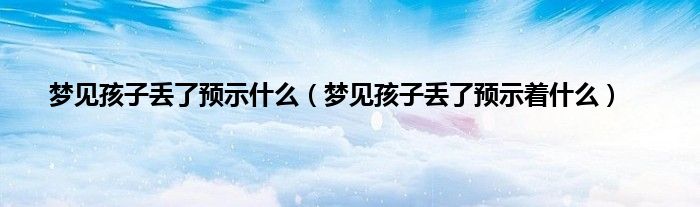 本文梦见孩子丢了预示什么,梦见孩子丢了预示着什么到此分享完毕,希望对大家有所帮助。