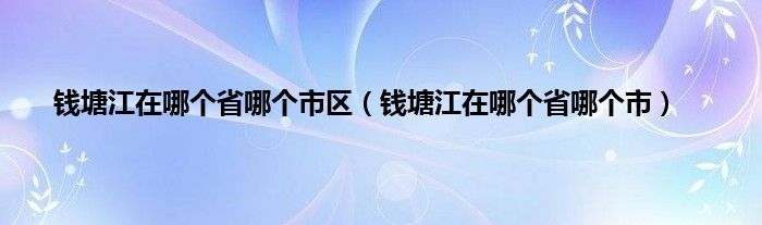 本文,钱塘江在哪个省哪个市区,钱塘江在哪个省哪个市到此就分享完毕,希望对大家有所帮助。
