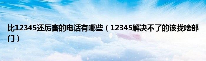 本文,比12345还厉害的电话有哪些,12345解决不了的该找啥部门到此就分享完毕,希望对大家有所帮助。