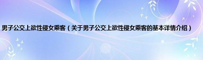 本文关于男子公交上欲性侵女乘客的基本详情介绍就讲解完毕,希望对大家有所帮助。