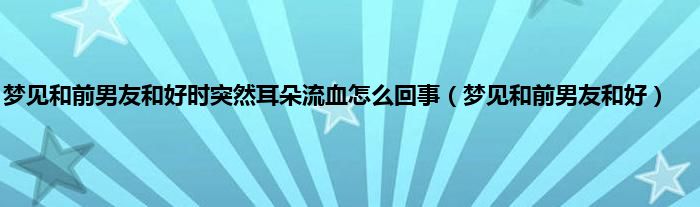 大家好,综合小编来为大家讲解下。梦见和前男友和好时突然耳朵流血怎么回事,梦见和前男友和好这个很多人还不知道,现在让我们一起来看看吧!