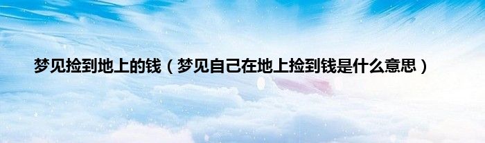 一、 梦见自己在地上捡到钱的梦境解析 梦见自己在地上捡到钱,如果捡到的是硬币,而且地上一堆捡不完,表示你最近的财运普通,没有特别好,但也不会负债。如果捡到的是大额钞票,表示你财运很好,虽然不是巨额款项,也不无小补。