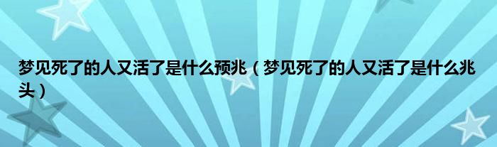 三、梦见死了的人又活了是什么兆头的吉凶