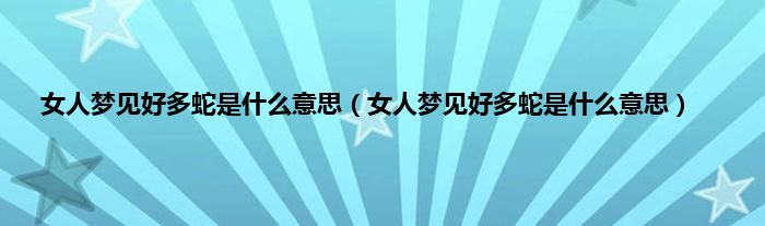 大家好,综合小编来为大家讲解下。女人梦见好多蛇是什么意思,女人梦见好多蛇是什么意思这个很多人还不知道,现在让我们一起来看看吧!
