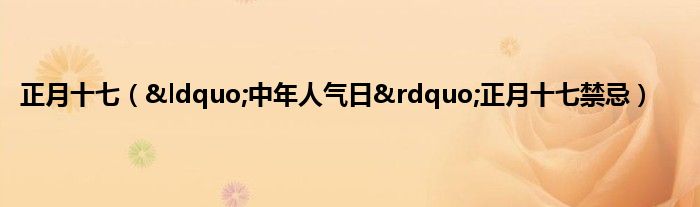 大家好,综合小编来为大家讲解下。正月十七,“中年人气日”正月十七禁忌这个很多人还不知道,现在让我们一起来看看吧!