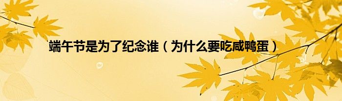 大家好,综合小编来为大家讲解下。端午节是为了纪念谁,为什么要吃咸鸭蛋这个很多人还不知道,现在让我们一起来看看吧!