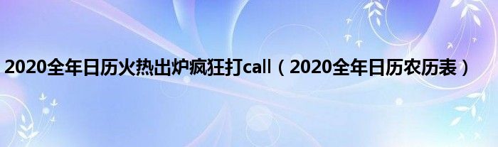 大家好,综合小编来为大家讲解下。2020全年日历火热出炉疯狂打call,2020全年日历农历表这个很多人还不知道,现在让我们一起来看看吧!