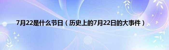 大家好,综合小编来为大家讲解下。7月22是什么节日,历史上的7月22日的大事件这个很多人还不知道,现在让我们一起来看看吧!