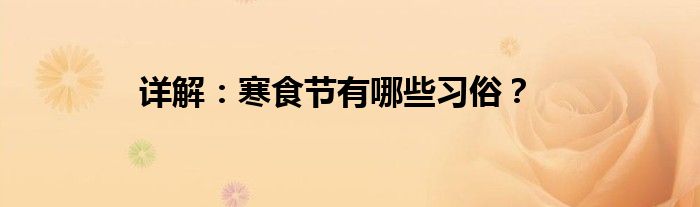 本文详解:寒食节有哪些习俗?到此分享完毕,希望对大家有所帮助。