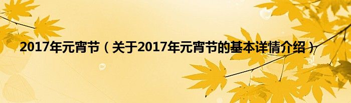 本文关于2017年元宵节的基本详情介绍就讲解完毕,希望对大家有所帮助。