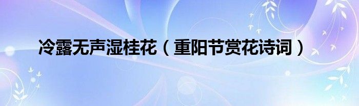 大家好,综合小编来为大家讲解下。冷露无声湿桂花,重阳节赏花诗词这个很多人还不知道,现在让我们一起来看看吧!