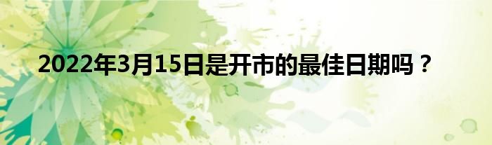 本文2022年3月15日是开市的最佳日期吗?到此分享完毕,希望对大家有所帮助。