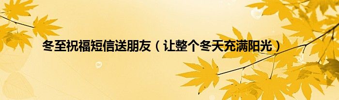 大家好,综合小编来为大家讲解下。冬至祝福短信送朋友,让整个冬天充满阳光这个很多人还不知道,现在让我们一起来看看吧!