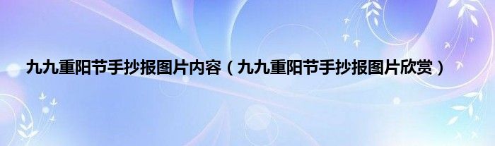 大家好,综合小编来为大家讲解下。九九重阳节手抄报图片内容,九九重阳节手抄报图片欣赏这个很多人还不知道,现在让我们一起来看看吧!