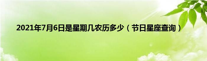 本文2021年7月6日是星期几农历多少,节日星座查询到此分享完毕,希望对大家有所帮助。