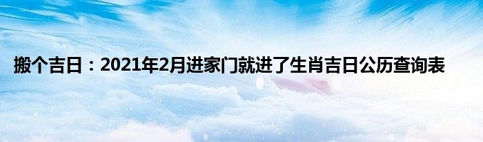 大家好,综合小编来为大家讲解下。搬个吉日:2021年2月进家门就进了生肖吉日公历查询表这个很多人还不知道,现在让我们一起来看看吧!