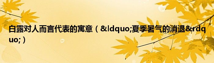 大家好,综合小编来为大家讲解下。白露对人而言代表的寓意,“夏季暑气的消退”这个很多人还不知道,现在让我们一起来看看吧!