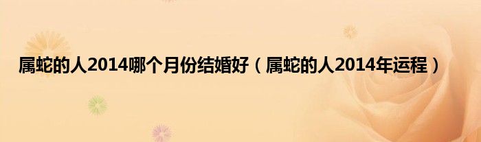 大家好,综合小编来为大家讲解下。属蛇的人2014哪个月份结婚好,属蛇的人2014年运程这个很多人还不知道,现在让我们一起来看看吧!