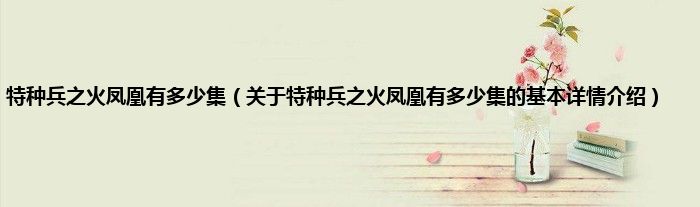 本文关于特种兵之火凤凰有多少集的基本详情介绍就讲解完毕,希望对大家有所帮助。