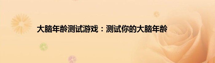 大家好,综合小编来为大家讲解下。大脑年龄测试游戏:测试你的大脑年龄这个很多人还不知道,现在让我们一起来看看吧!