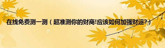 本文在线免费测一测,超准测你的财商!应该如何加强财运?到此分享完毕,希望对大家有所帮助。