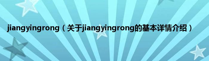 本文关于jiangyingrong的基本详情介绍就讲解完毕,希望对大家有所帮助。