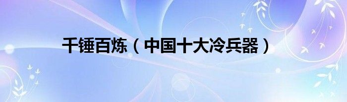 大家好,综合小编来为大家讲解下。千锤百炼,中国十大冷兵器这个很多人还不知道,现在让我们一起来看看吧!