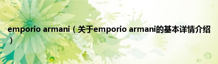 本文关于emporio armani的基本详情介绍就讲解完毕,希望对大家有所帮助。