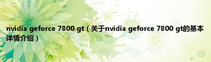本文关于nvidia geforce 7800 gt的基本详情介绍就讲解完毕,希望对大家有所帮助。