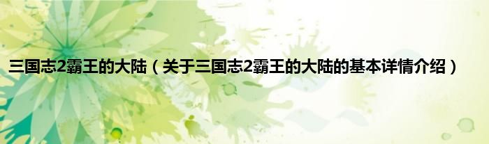 本文关于三国志2霸王的大陆的基本详情介绍就讲解完毕,希望对大家有所帮助。